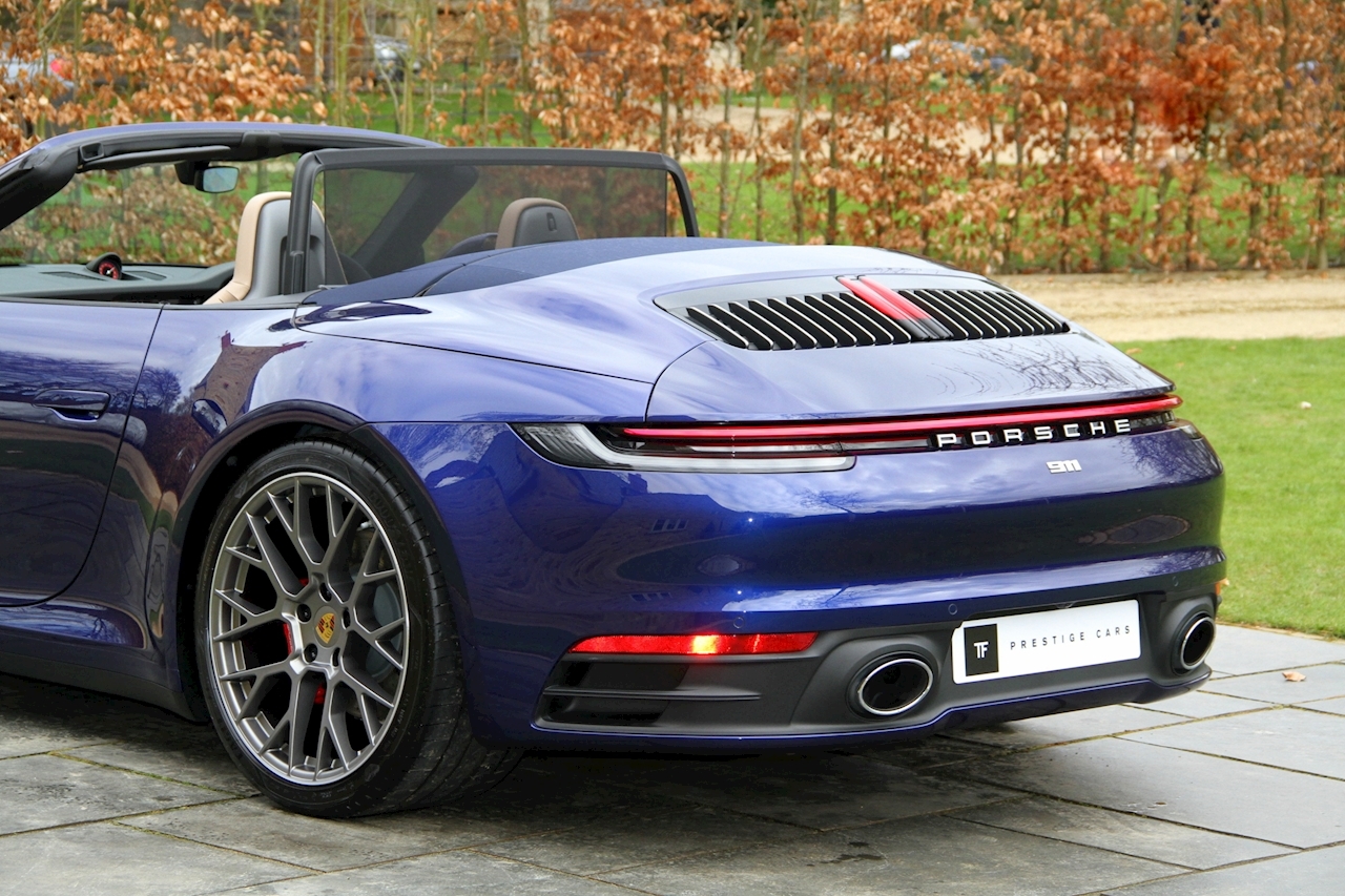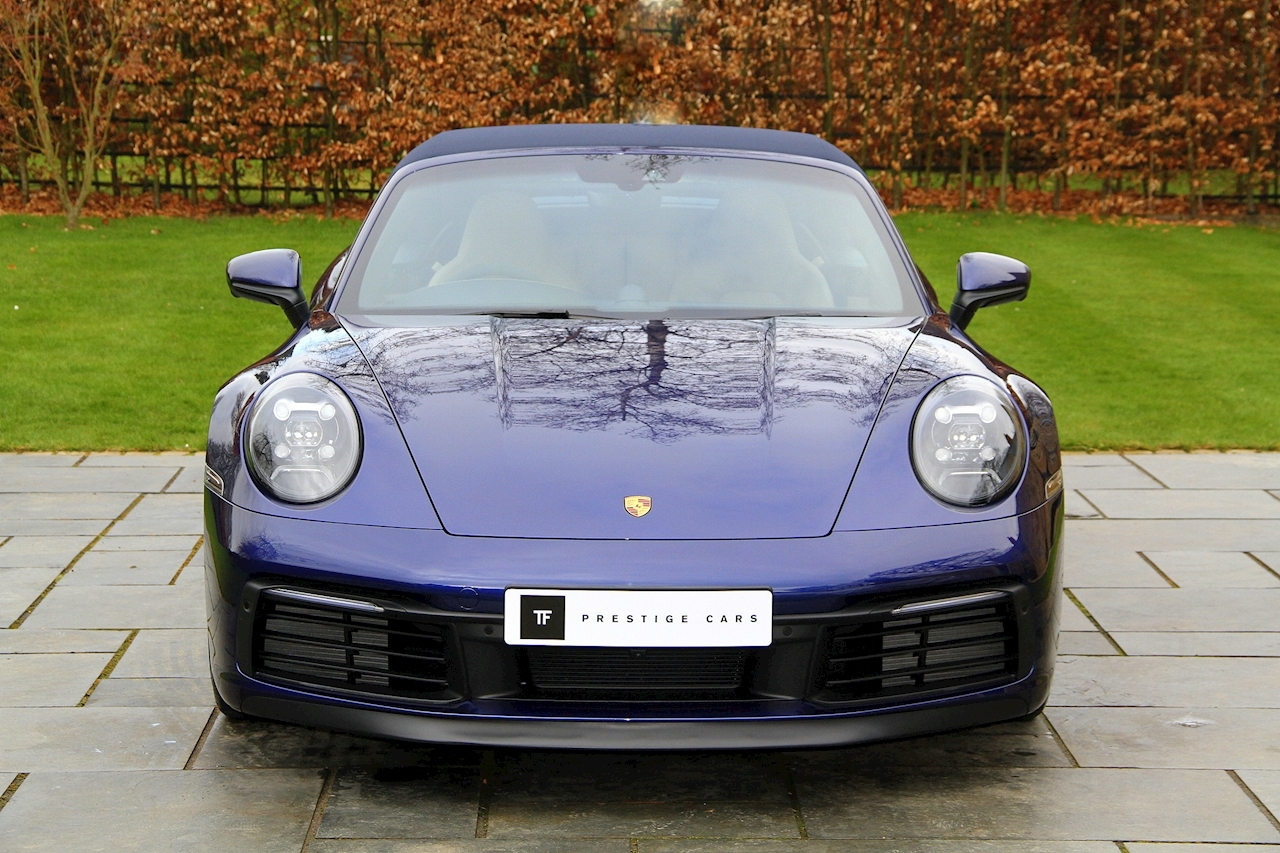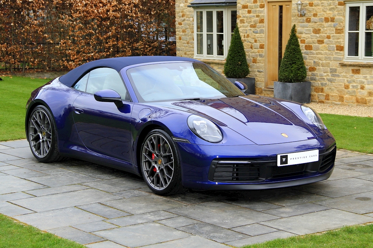 T.F. Prestige cars are excited to offer you this beautiful Porsche 992 Carrera 4S Cabriolet 3.0 PDK finished in Gentian Blue Metallic.
